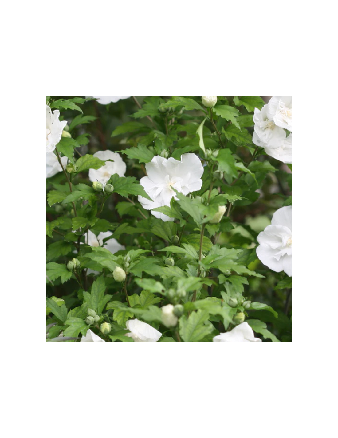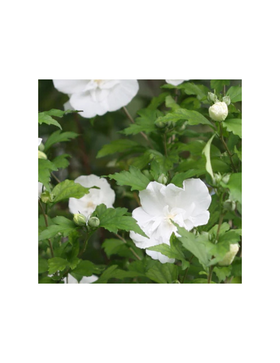 Arbuste rustique à feuillage caduc apprécié pour la profusion de sa floraison qui se prolonge jusqu'aux gelées. Son port est érigé, sa croissance vigoureuse. A planter au soleil, en isolé, en haie basse ou libre. White Chiffon est un hibiscus à fleurs doubles.