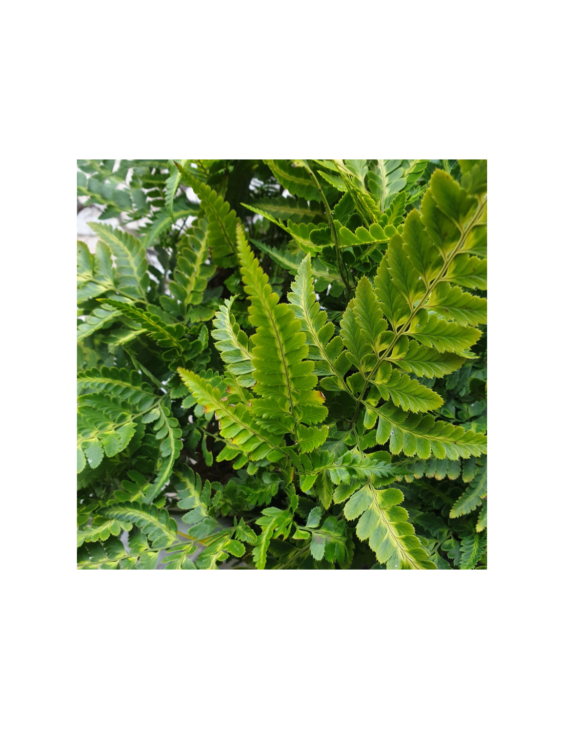 Petite fougère provenant d'Asie au feuillage persistant, particulièrement décoratif, brillant à nervure panachée. Ce fougère apprécie l'ombre et les sols frais. Le feuillage est totalement persistant en hiver. Fougère parfaite pour l'ornement d'une rocaille.