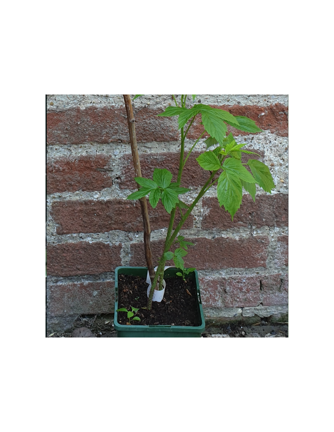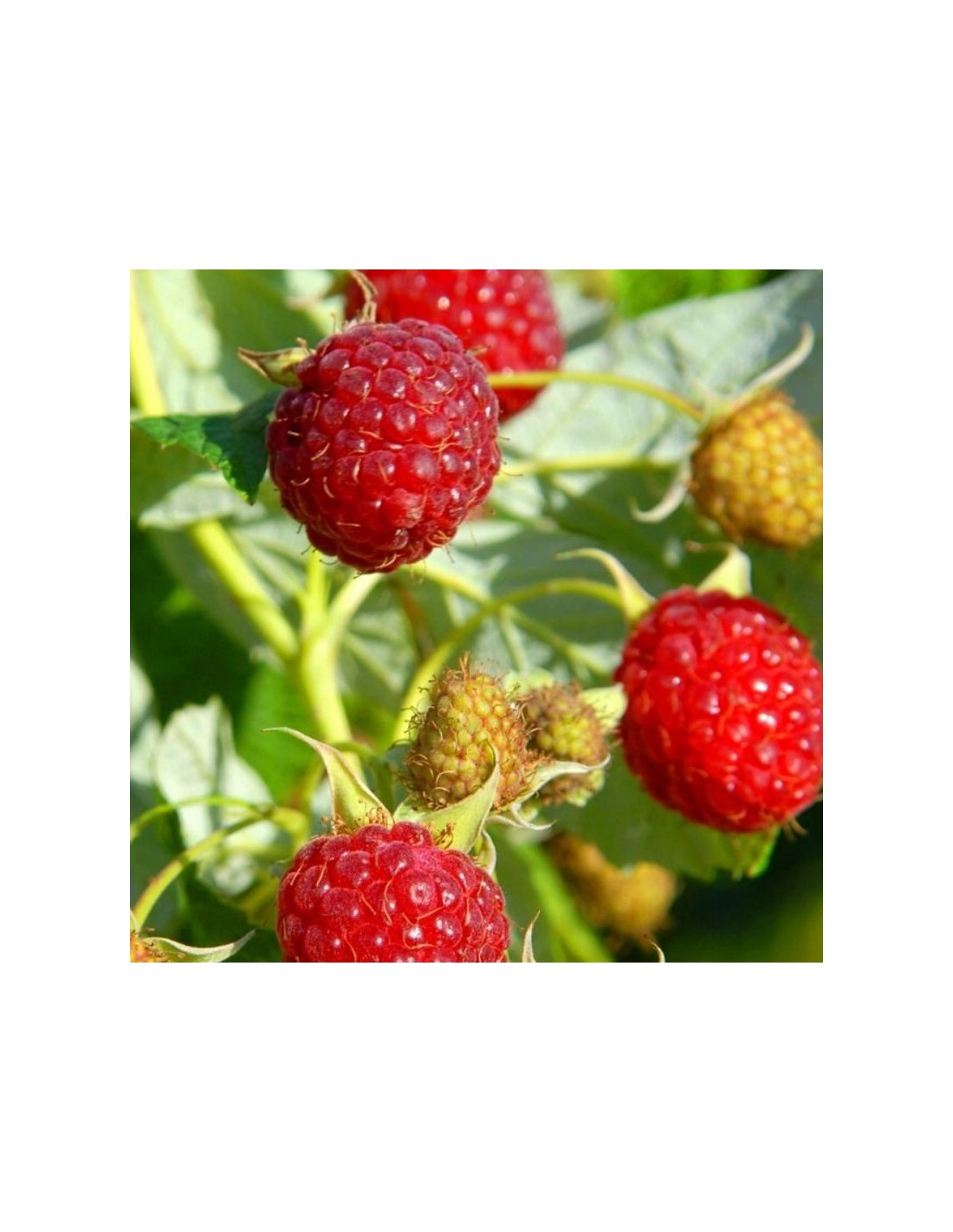 Framboisier Heritage, variété auto fertile et remontant aux tiges peu épineuses proposé en botte. Forme un buisson au feuillage vert clair d'environ 1.5m.