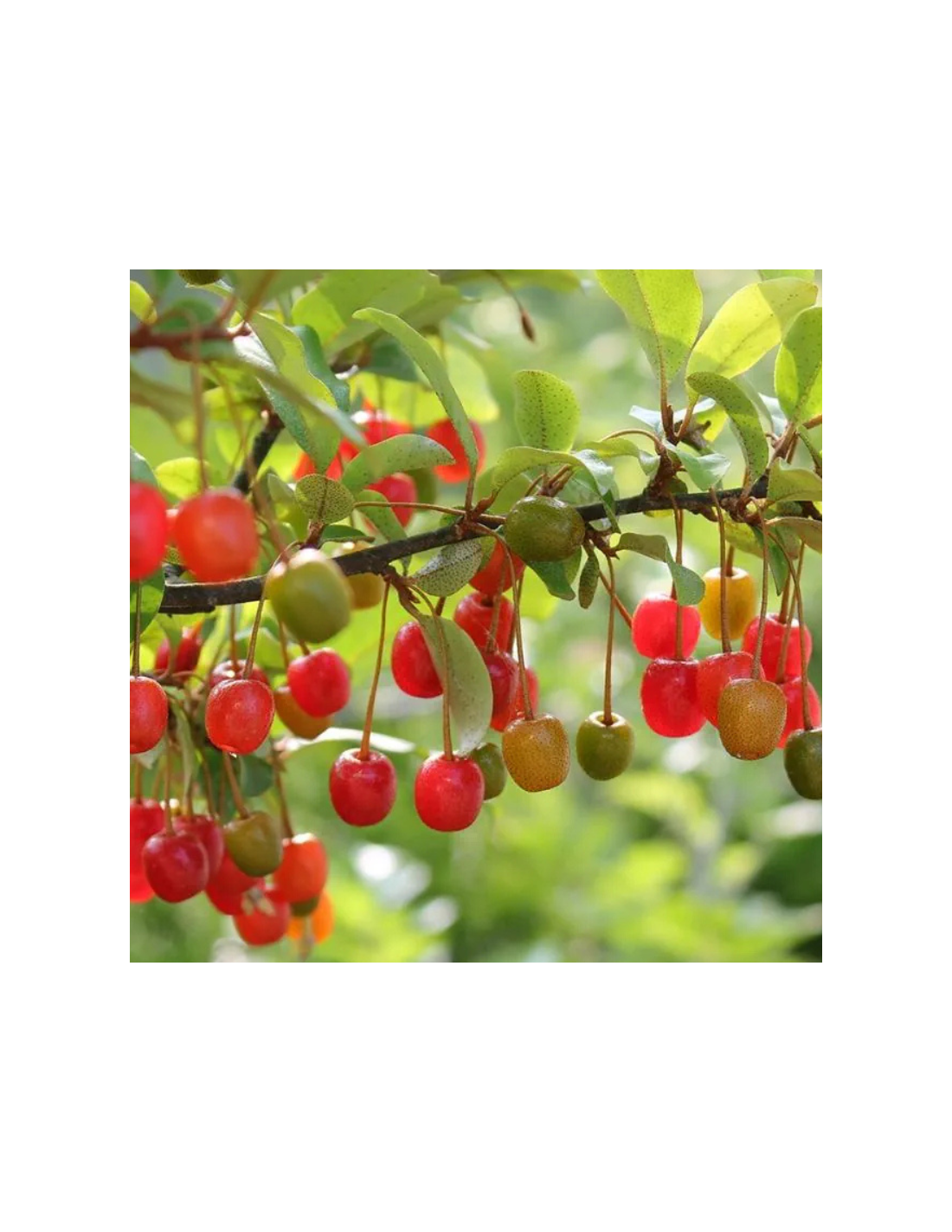 Variété récente de chalef en ombelles très productive. Sa croissance est rapide, sa floraison blanc crème est très parfumée, ses nombreuses petites fleurs blanches attirent les butineurs. Celles-ci sont suivies de nombreuses baies rouges sucrées comestibles et décoratives. Le feuillage est vert à revers argenté.