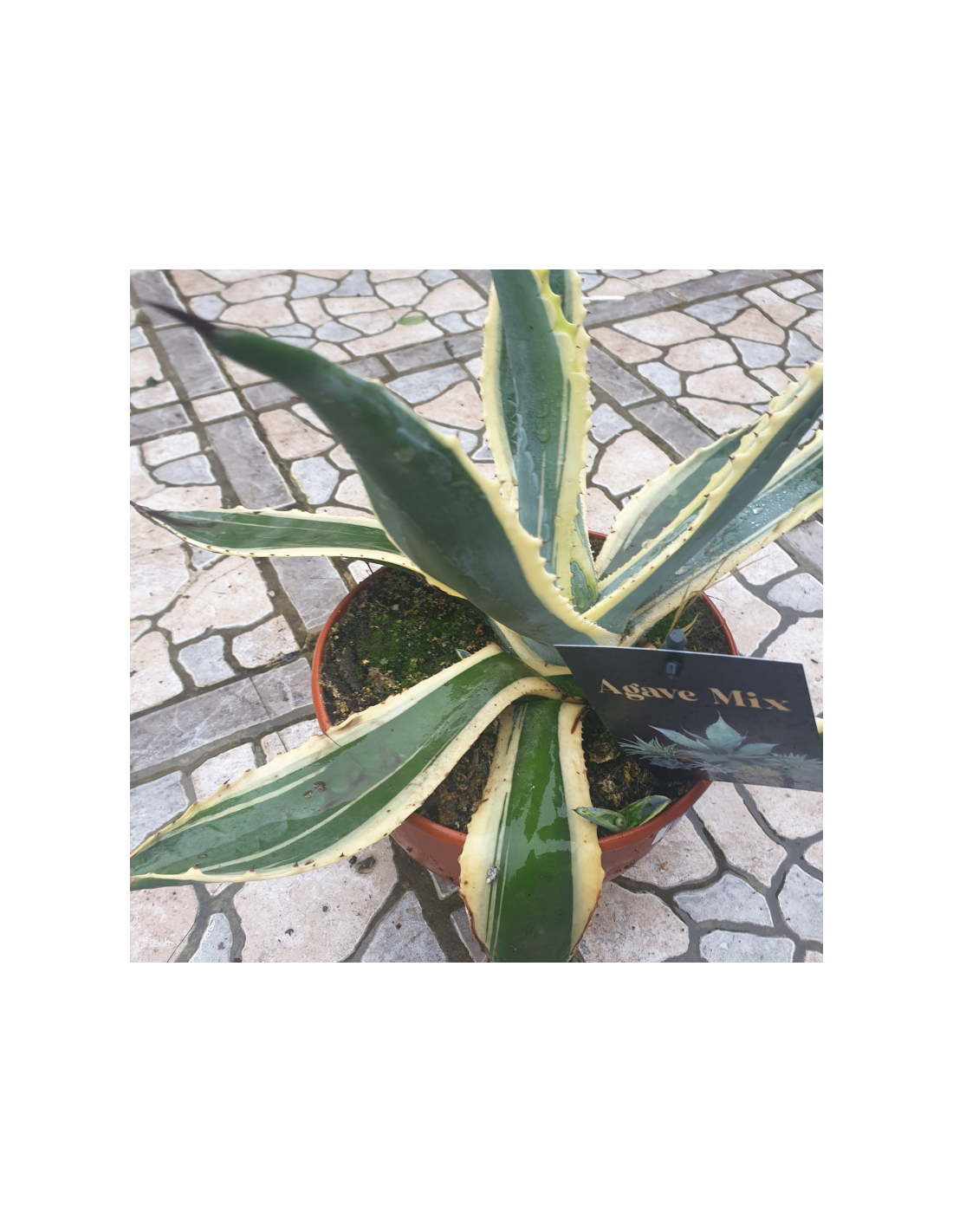 Agave vivace à feuillage panaché au développement impressionnant à installer pleine terre en zone adaptée ou en pot pour les situations géographiques moins ensoleillées. Agave americana ne craint ni la chaleur, ni la sécheresse. Doté de rhizomes puissants, cet agave rejette beaucoup de jeunes plants à proximité de la plante mère. Attention à ses feuilles très pointues pouvant être dangereuses pour les enfants en encore les animaux de compagnie. Ces feuilles vert bleuté se développent autour d'une large rosette. La floraison intervient en principe au bout d'une vingtaine d'année sous forme de hampe florale qui peut atteindre jusque dix mètres de hauteur.