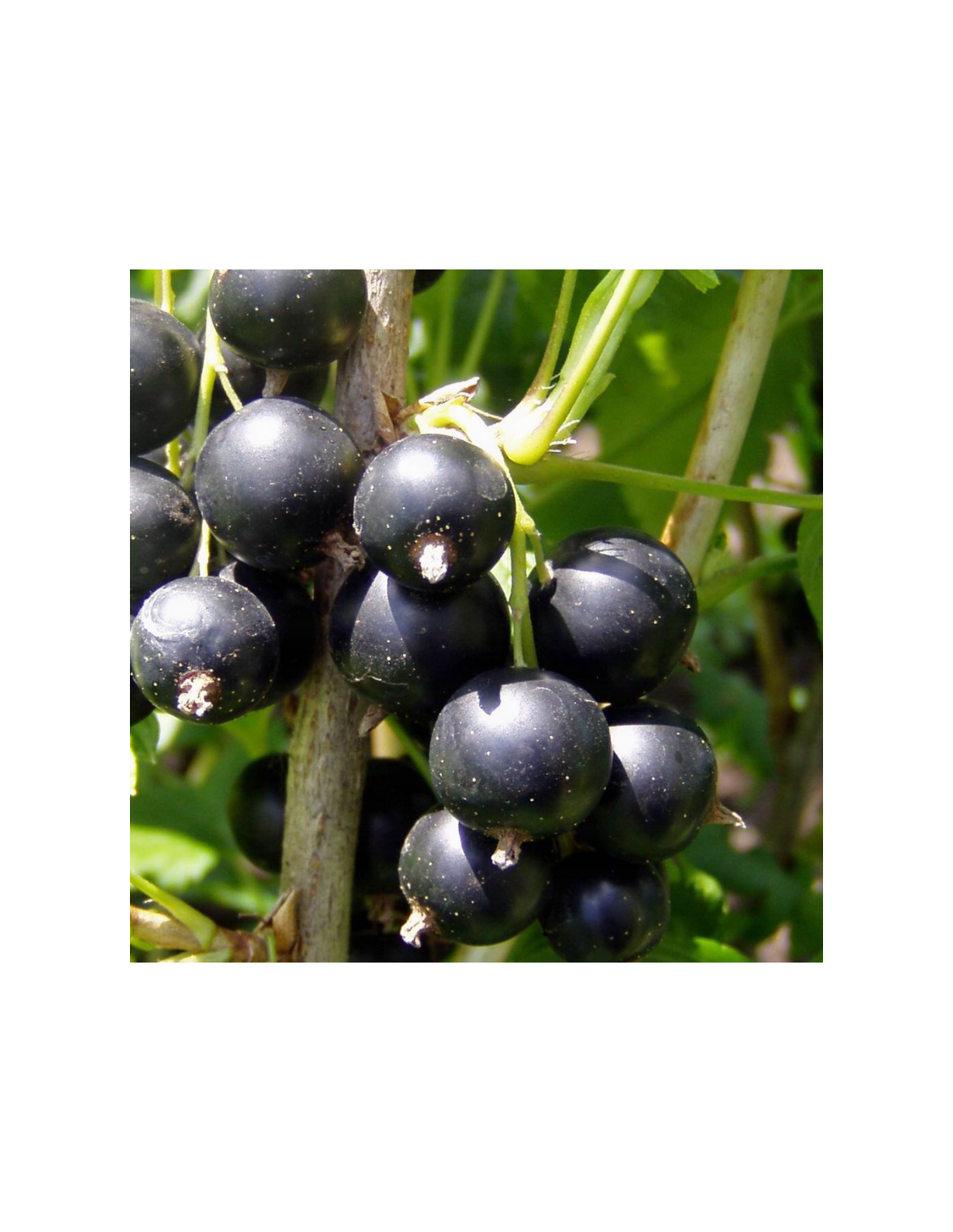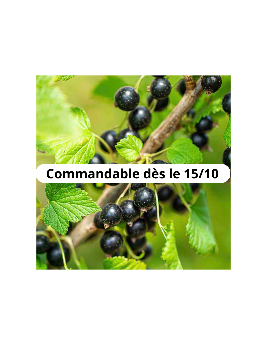 Cassissier trois branches, vigoureux à fort rendement produisant de grosses baies noires très savoureuses.