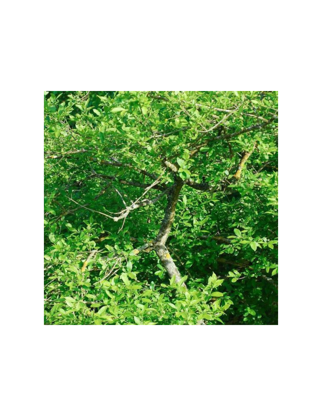 Floraison en avril mai sous forme de petites fleurs en corymbes blanches tachetées de rose ; les fleurs sont suivies de baies noires astringeantes et aigres.