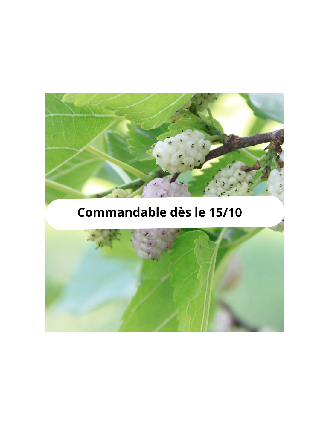 Les plants sont vendus en racines nues, de novembre à fin février.  Prévoir un endroit adapté pour planter le mûrier, ses puissantes racines sont pivotantes.