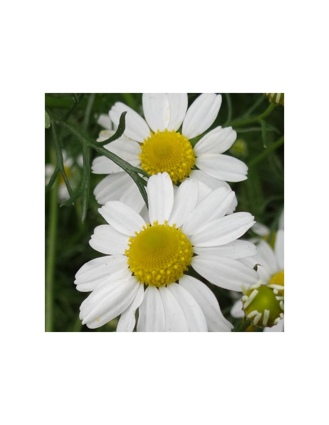 Vivace au feuillage aromatique (qui rappelle le parfum de la pomme) formant un tapis qui se pare de jolies petites fleurs blanches à coeur jaune entre les mois de juillet et août.